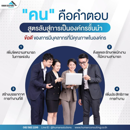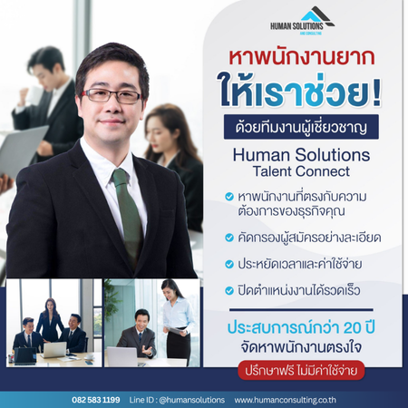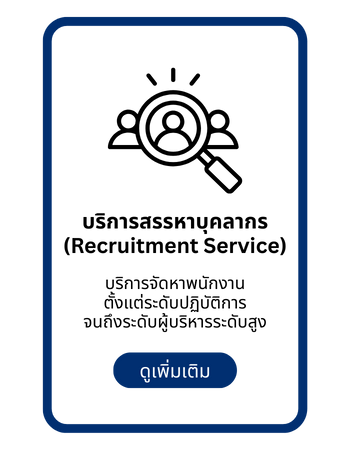 ที่ปรึกษาด้านการบริหารงานบุคคล (HR Consulting),บริการด้านการสรรหาบุคลากร (Recruitment Agency) และบริการออกแบบหลักสูตร/จัดฝึกอบรม (In-house Training) ตามความต้องการของลูกค้าดูแลโดยทีมงานประสบการณ์ตรงด้านการบริหารงานบุคคลในหลากหลายอุตสาหกรรม ด้วยประสบการณ์กว่า 20 ปี เราพร้อมให้บริการที่ตอบโจทย์ความต้องการที่แตกต่างของลูกค้าในธุรกิจต่างๆและพร้อมส่งมอบงานที่มีคุณภาพด้วยความเป็นมืออาชีพ